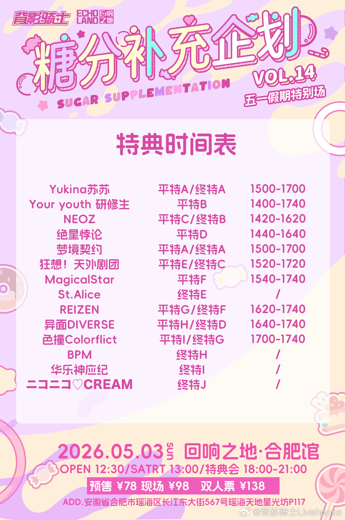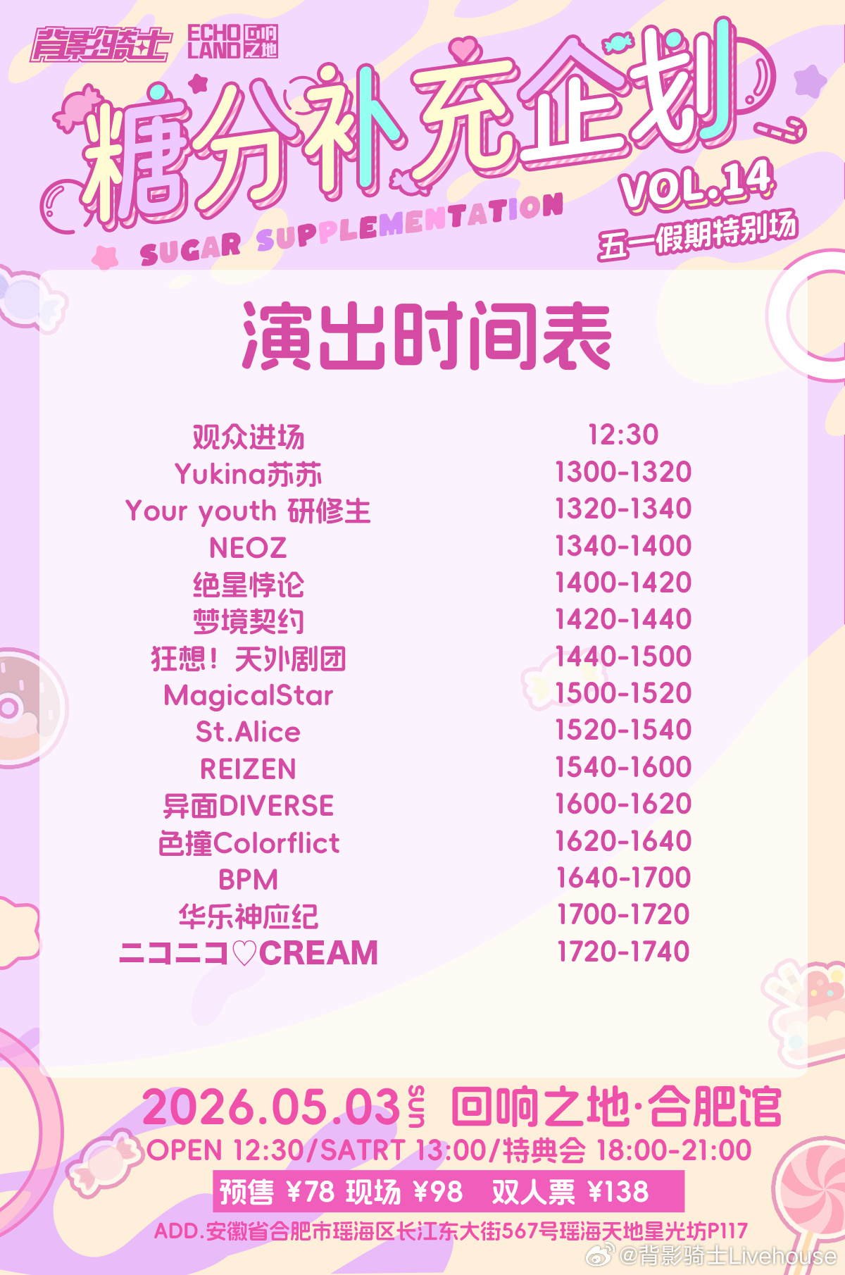 预售:68 / 现场:78 / 双人票:138